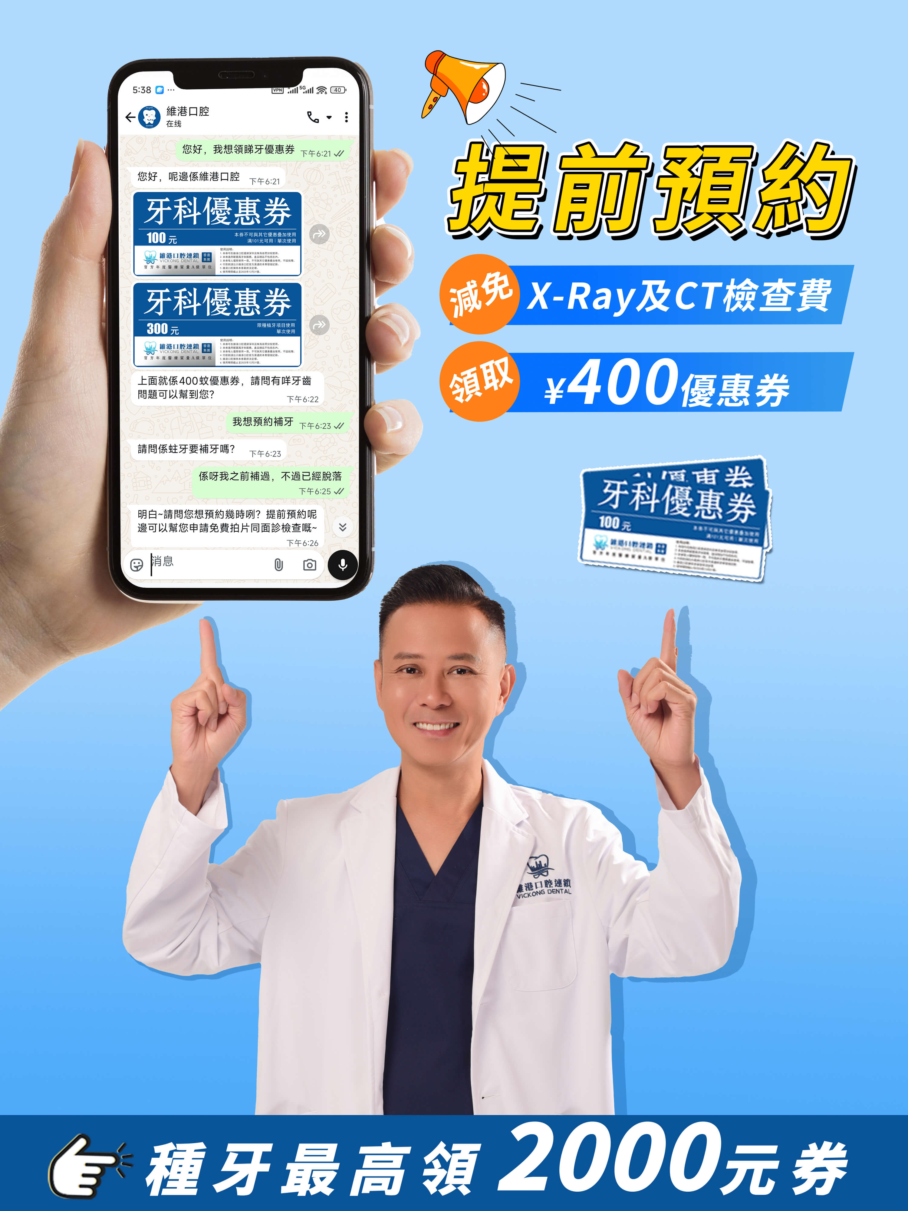 術提前預約可豁免X-Ray及CT檢查費,仲可獲得¥400優惠券