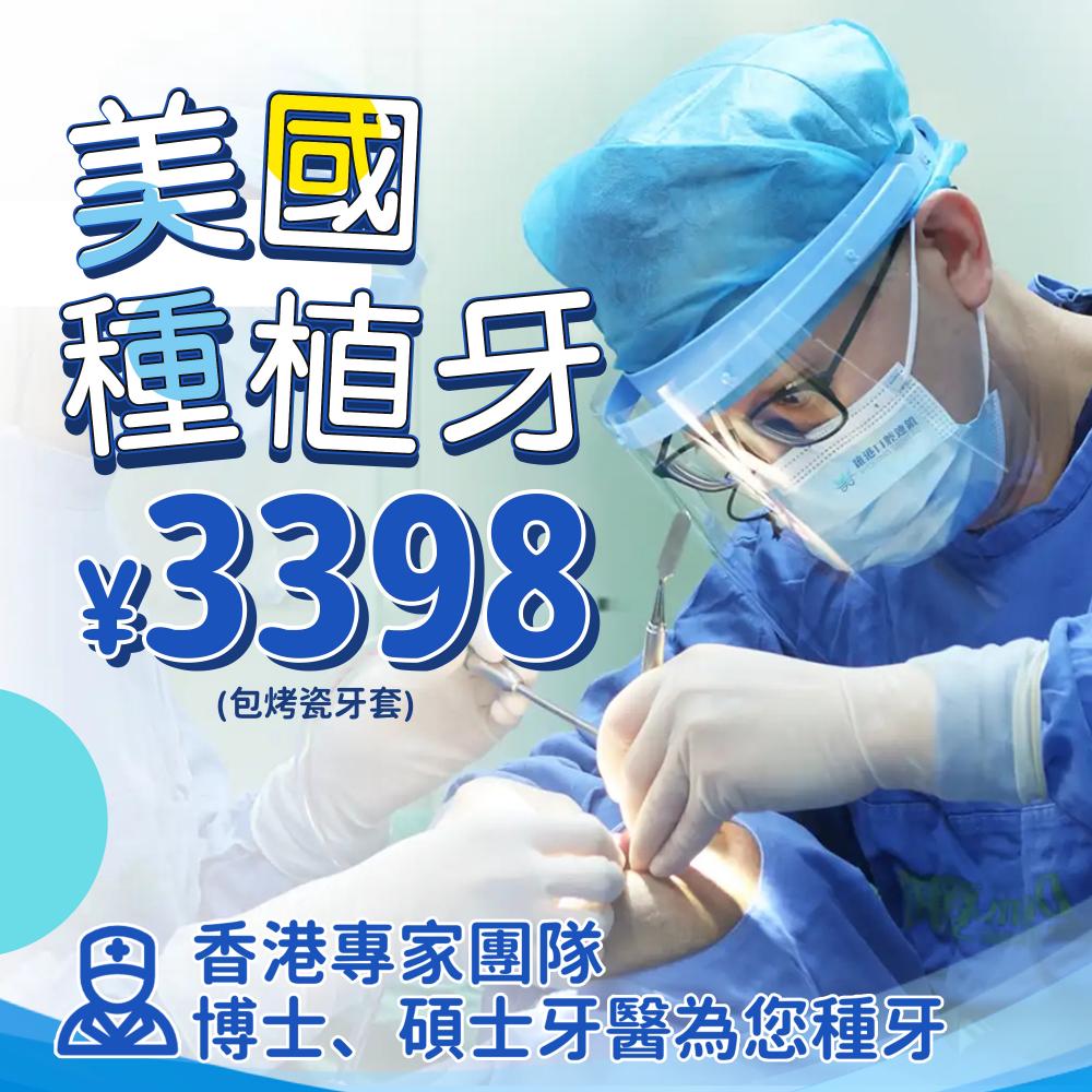 | 美國種植牙【烤瓷】 | 3398(限時優惠) |