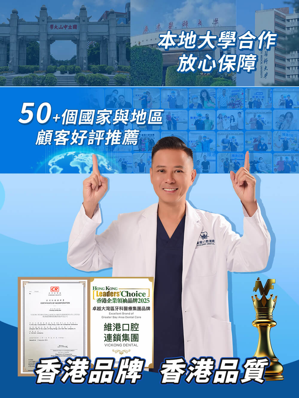 維港口腔是由港人主理,粵港知名醫藥大學導師、國家985重點大學醫學博士(碩士研究生導師、高級教授)成立的香港大型醫療集團,創始於2008年。維港口腔踐行「醫道濟世」的大學校訓,十七年穩定開診,榮獲「2024香港企業領袖品牌」、「2025香港企業領袖品牌」,是諾貝爾種植系統全球放心植牙中心,香港新城電台與廣東衛視推薦品牌,服務超過三十個國家和地區的顧客,受到粵港澳大灣區及周邊城市市民的歡迎與信任